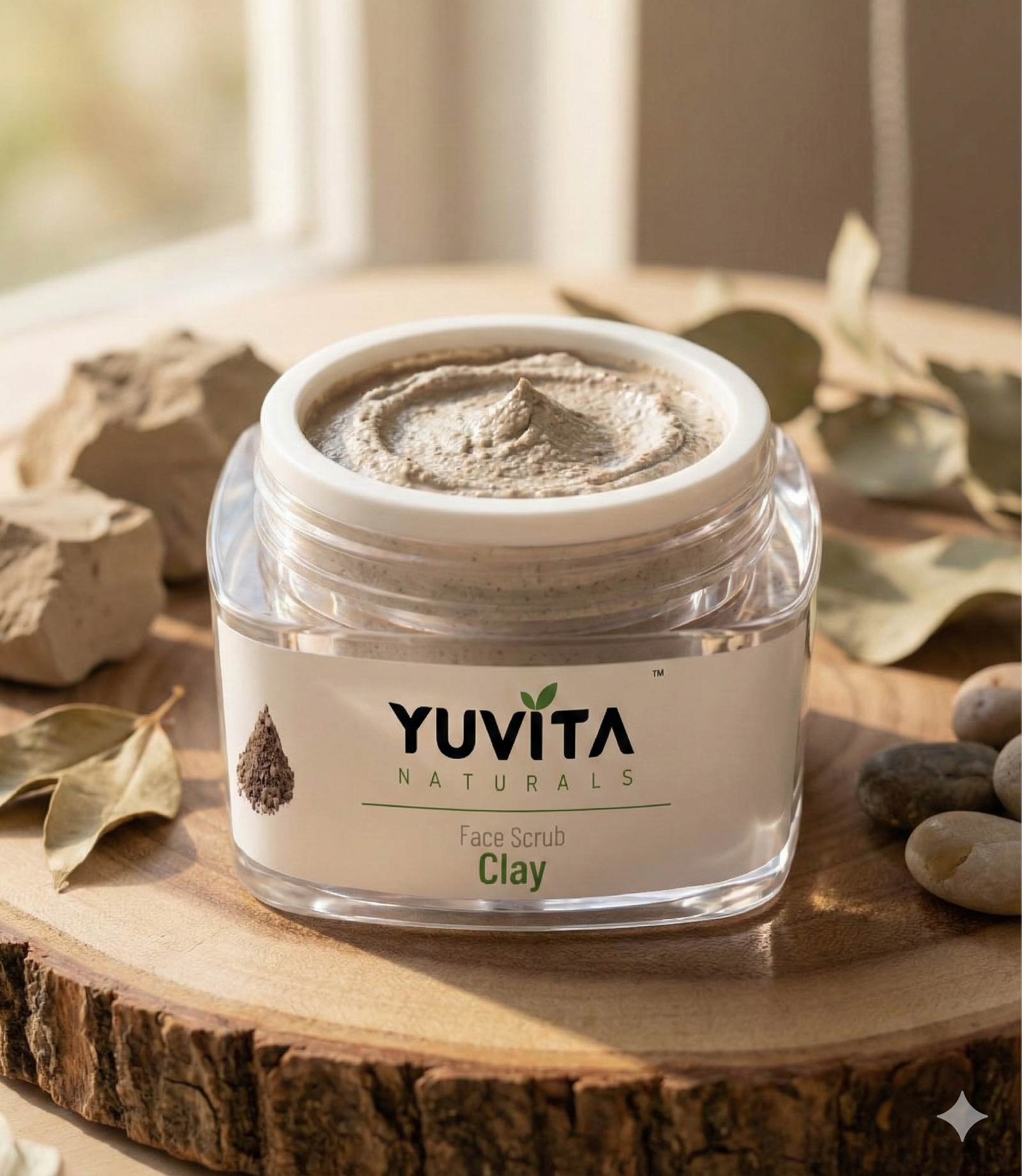 Elevate your daily ritual with YUVITA NATURALS’ mineral-rich exfoliating scrub, a refined expression of earthy purity. At its heart lies natural clay—revered for its purifying and balancing properties.
