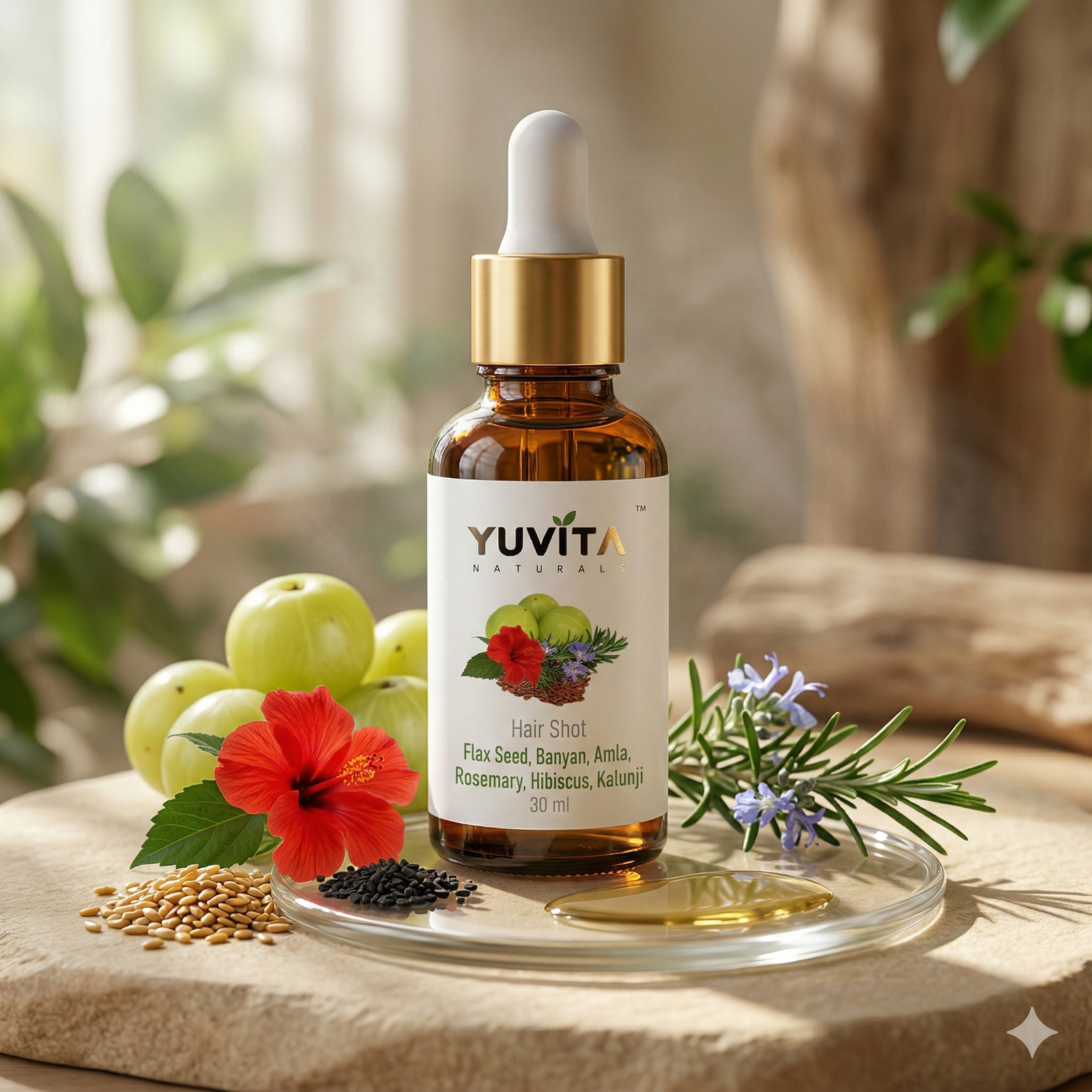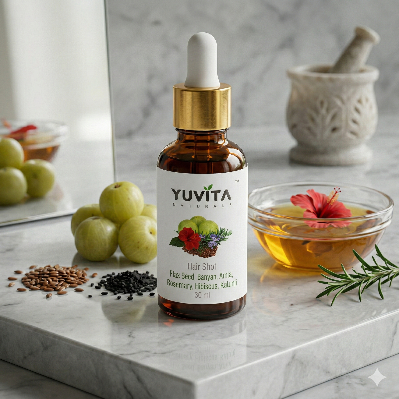 Amla, Hibiscus, Flax Seeds, Banyan, Rosemary & Kalunji,