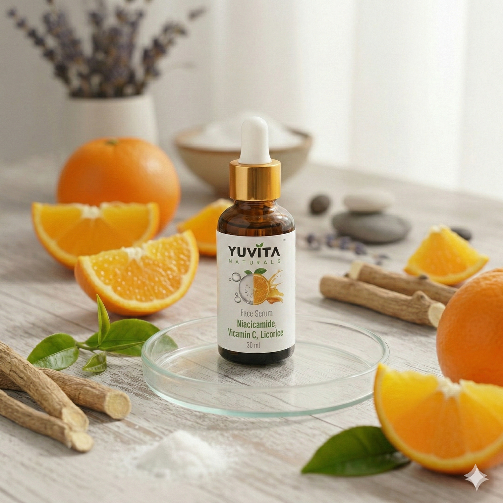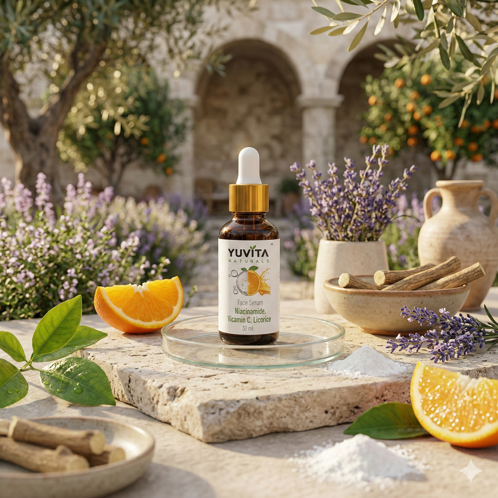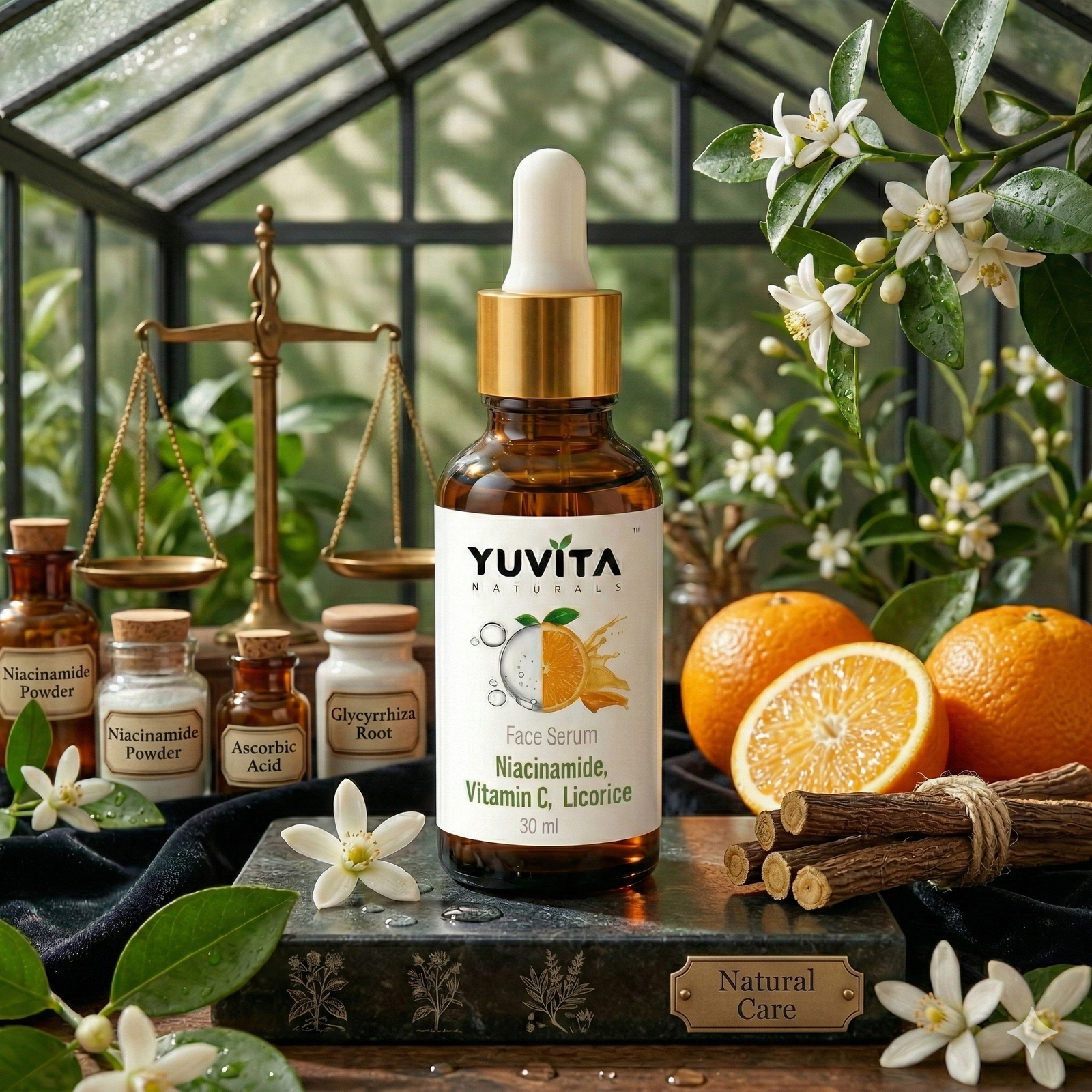 Discover a refined balance of science and botanical care with YUVITA NATURALS Niacinamide & Vitamin C Face Serum. This thoughtfully crafted formula blends modern skincare ingredients with botanical traditions to help reveal a smoother, brighter, and more balanced complexion.