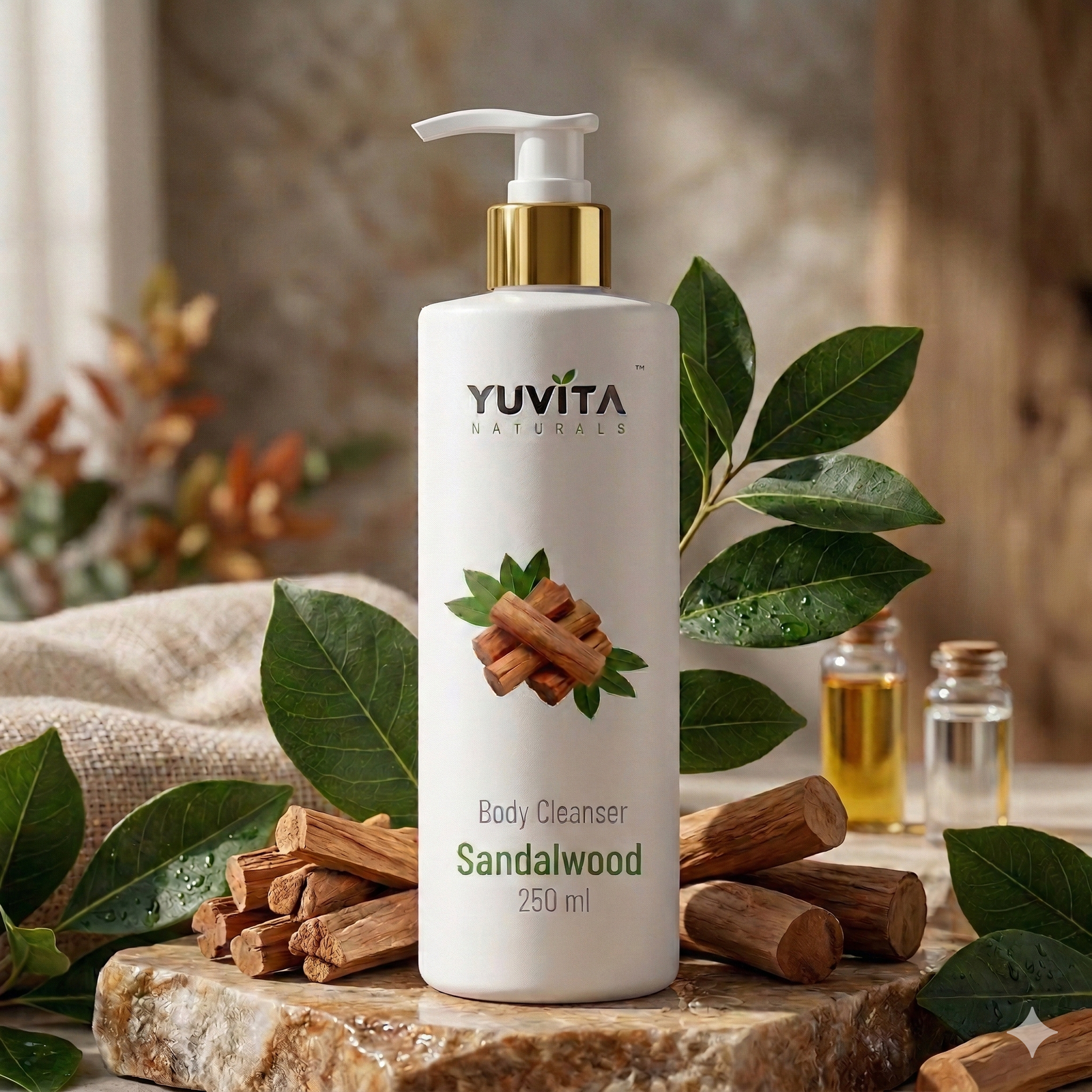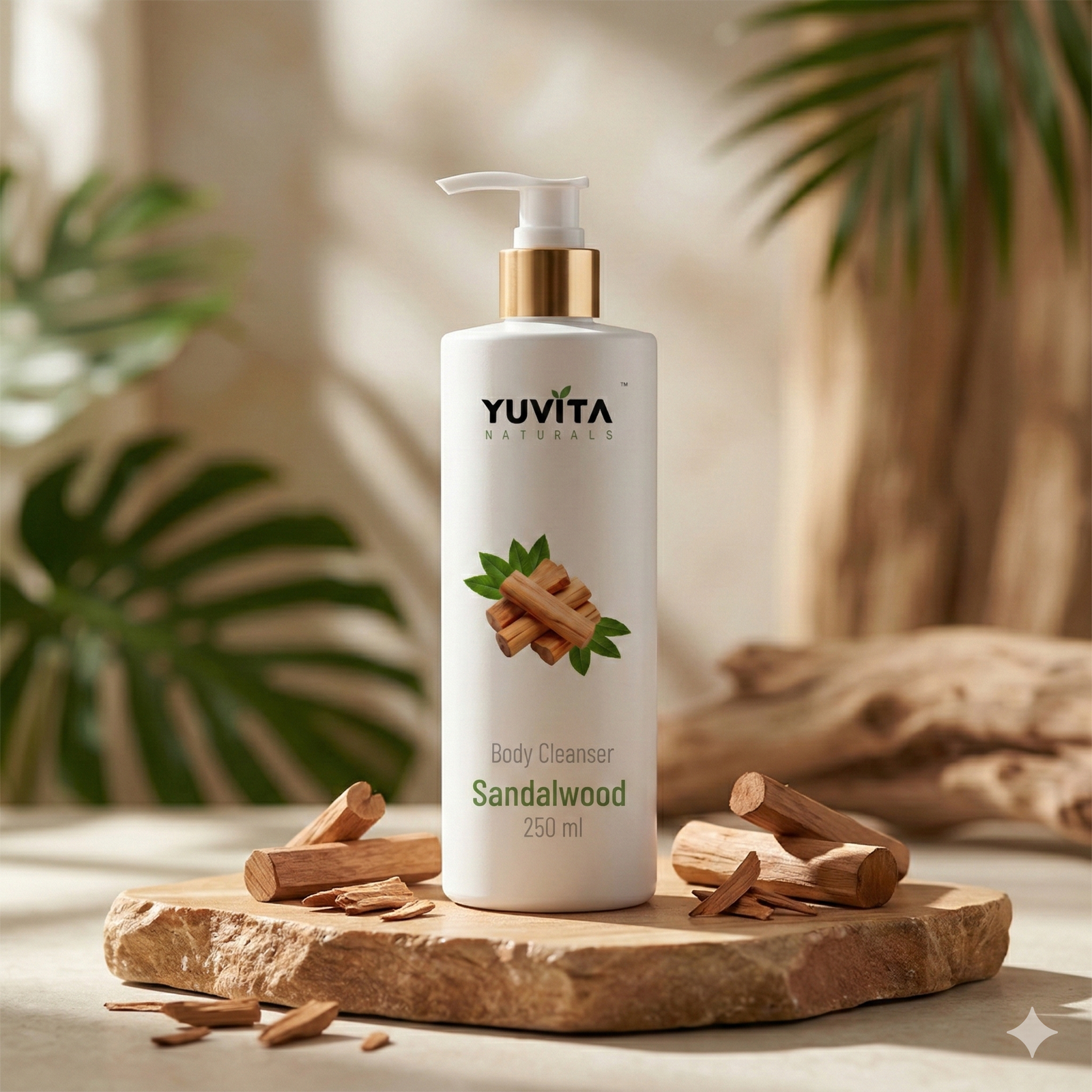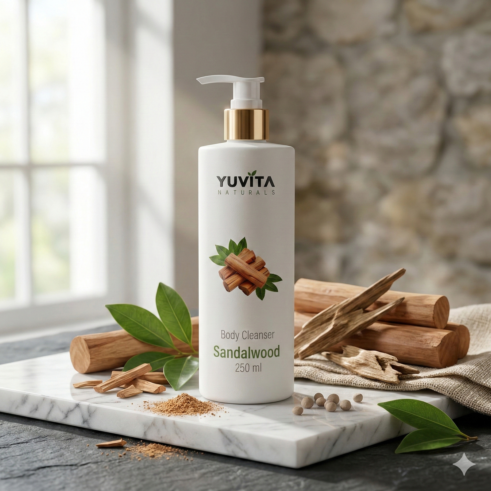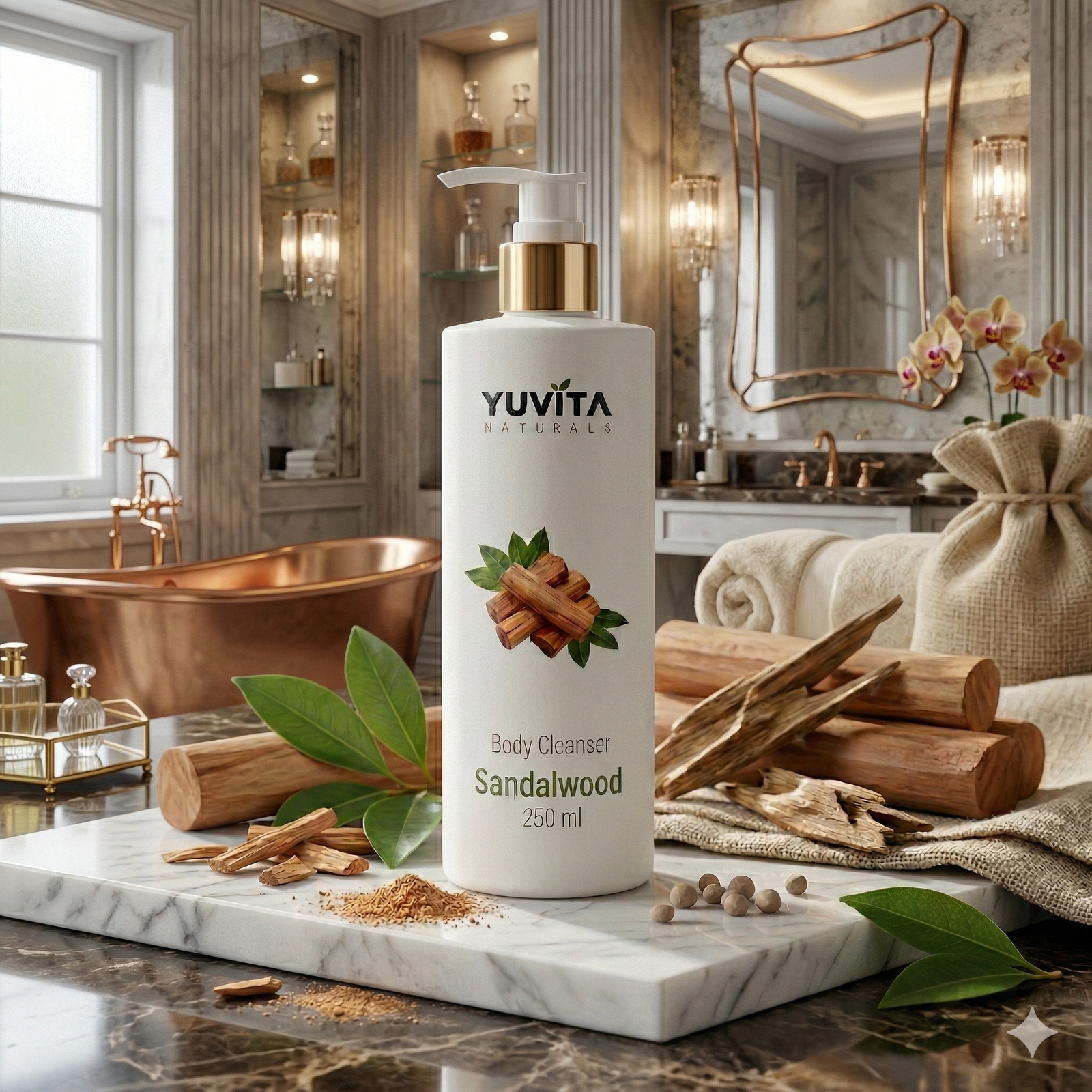 Elevate your daily ritual with YUVITA NATURALS’ Sandalwood Body Cleanser, a masterpiece of botanical refinement. At its heart lies Sandalwood—a timeless ingredient revered for its soothing, purifying, and skin-balancing properties.