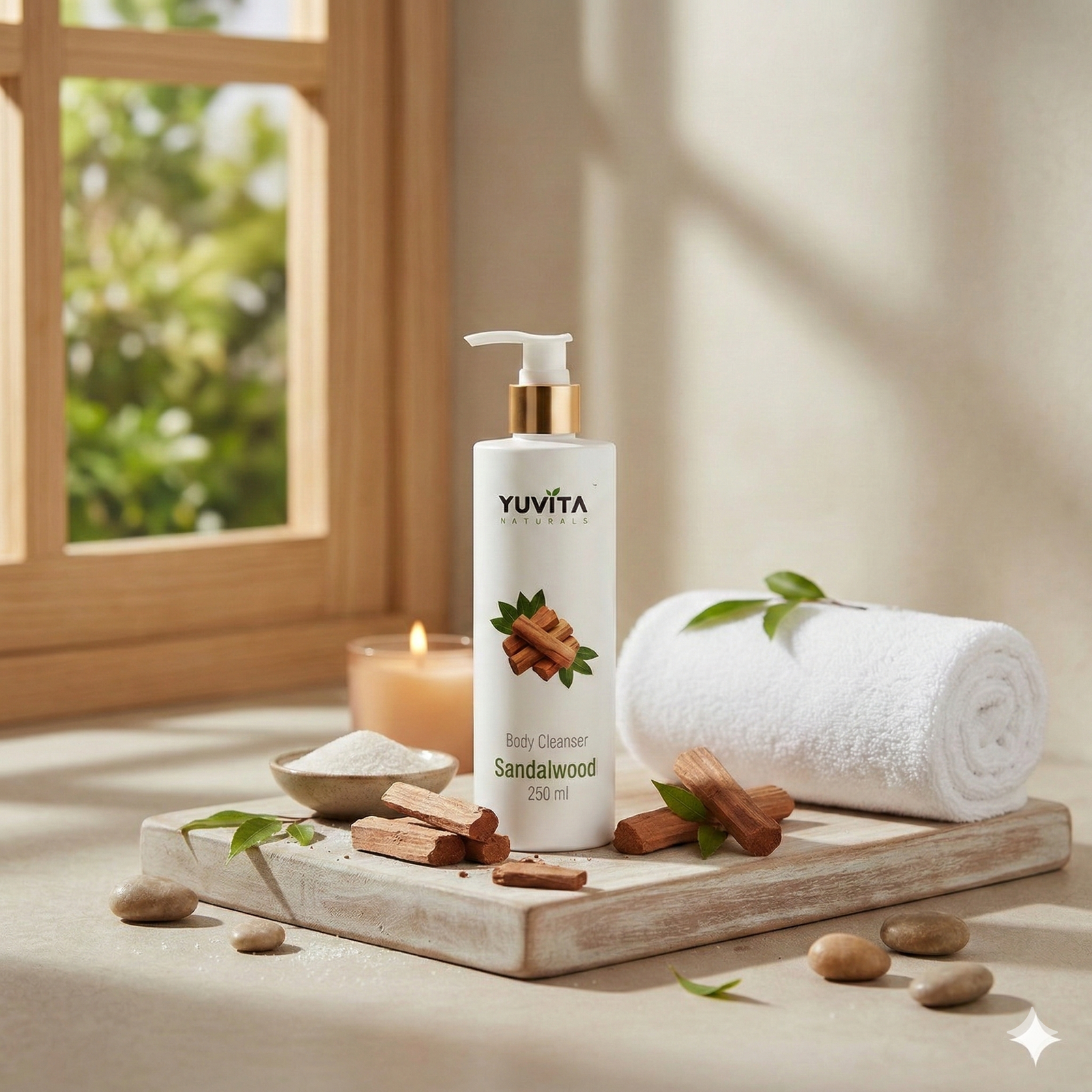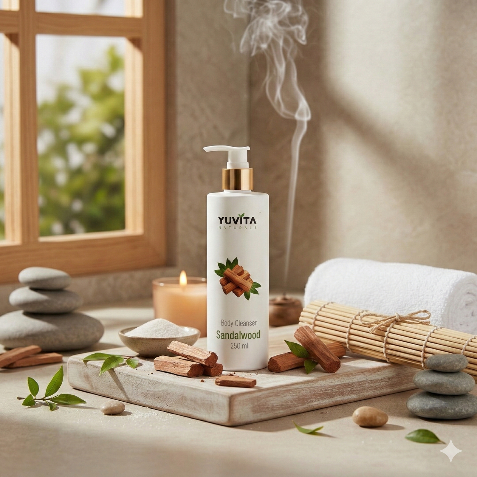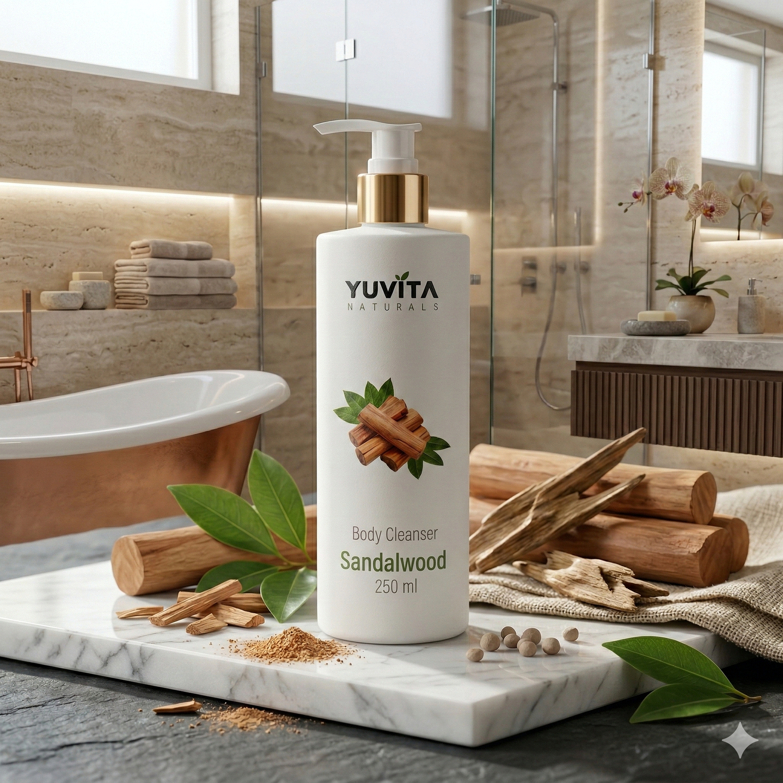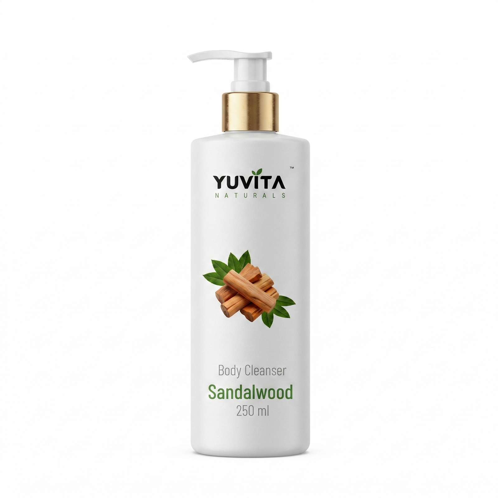 Elevate your daily ritual with YUVITA NATURALS’ Sandalwood Body Cleanser, a masterpiece of botanical refinement. At its heart lies Sandalwood—a timeless ingredient revered for its soothing, purifying, and skin-balancing properties.