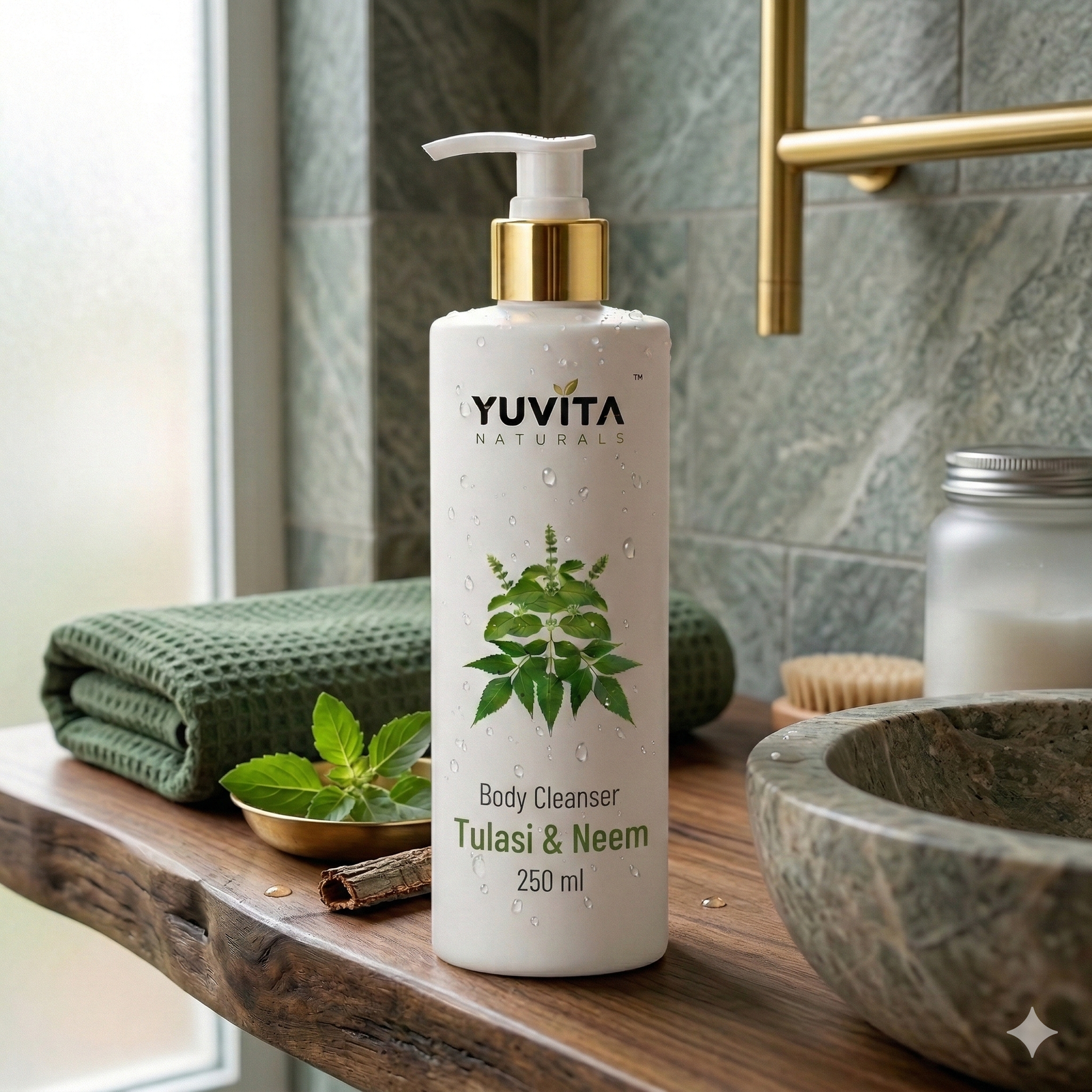 Elevate your daily ritual with YUVITA NATURALS’ Tulasi & Neem Body Cleanser, a masterpiece of herbal refinement. At its heart lies Tulasi & Neem—two revered botanicals known for their purifying, soothing, and protective properties.